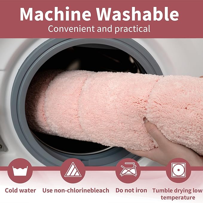 - Machine Washable - Machine wash the bathroom floor mat with cold water and mild detergent. Make sure the dryer is on low heat setting when tumble dry and keep away from chlorine and bleach. After professional testing, the color will remain vibrant after many washes.