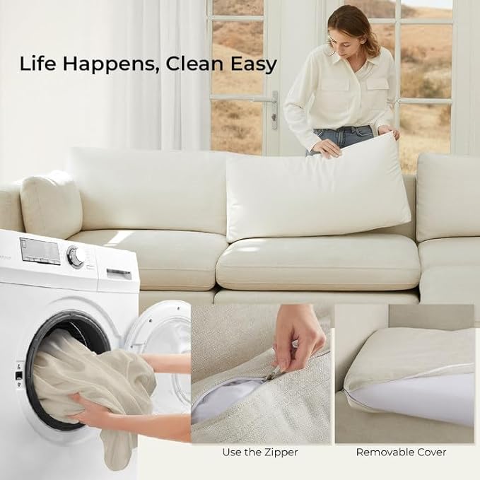 CHITA Oversized Modular Sectional Sofa, FSC Certified L Shaped Sectional Couches for Living Room, 112 inch Width,4 Seat Modular Sofa with Storage Ottoman, Linen