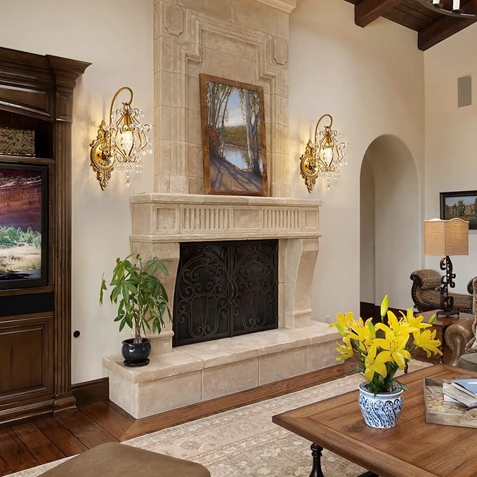 - 💡【High Quality Standard】High-grade K9 crystal with excellent appearance and transparency. The iron body of this crystal wall sconce is meticulously crafted using a copper plating process, boasting a brass color and brass-like properties. It is corrosion-resistant, with long-lasting color, and its quality far surpasses that of spray-painted products. This vintage wall sconce can withstand at least fifteen years of use.