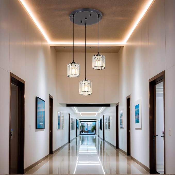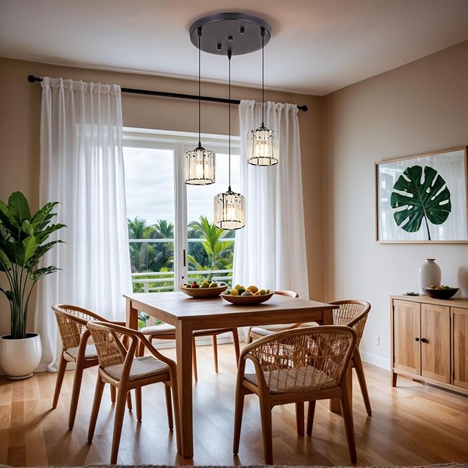 - 【Chandelier Application】: The K9 crystal lampshade has a beautiful and simple design and is an ideal decorative lighting fixture for kitchen islands, foyer, farmhouse, dining room, living room, etc.