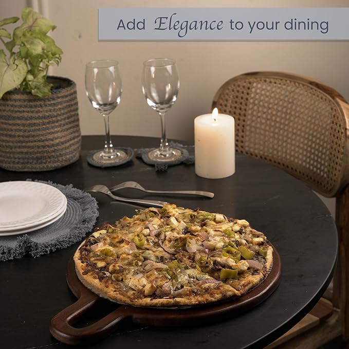 - IDEALLY SIZED WITH HANDLE FOR VERSATILE USE: Our serving board is thoughtfully sized to cater to the requirements of both home cooks and professionals. The generous surface area offers ample space for ingredient preparation, while the long handle ensures easy maneuverability. From vegetable chopping to meat carving, this cutting board is designed to tackle various kitchen tasks.