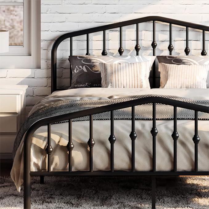SHA CERLIN Full Size Metal Platform Bed Frame with Victorian Style Wrought Iron-Art Headboard/Footboard, No Box Spring Required, Black