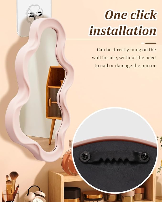 - Abstract Wavy Design: Small hanging mirror Unique asymmetrical, squiggly shape adds a funky, artistic touch to your decor.A statement piece for boho, modern, or eclectic styles.