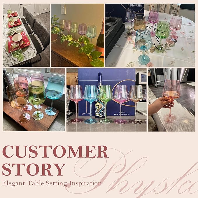 - Wine Partnership: The wine glass set is perfect for any occasion whether you're hosting a dinner party, savoring a glass of wine after work, or enjoying a romantic dinner with your loved ones. The colored wine glass will elevate your drinking experience.