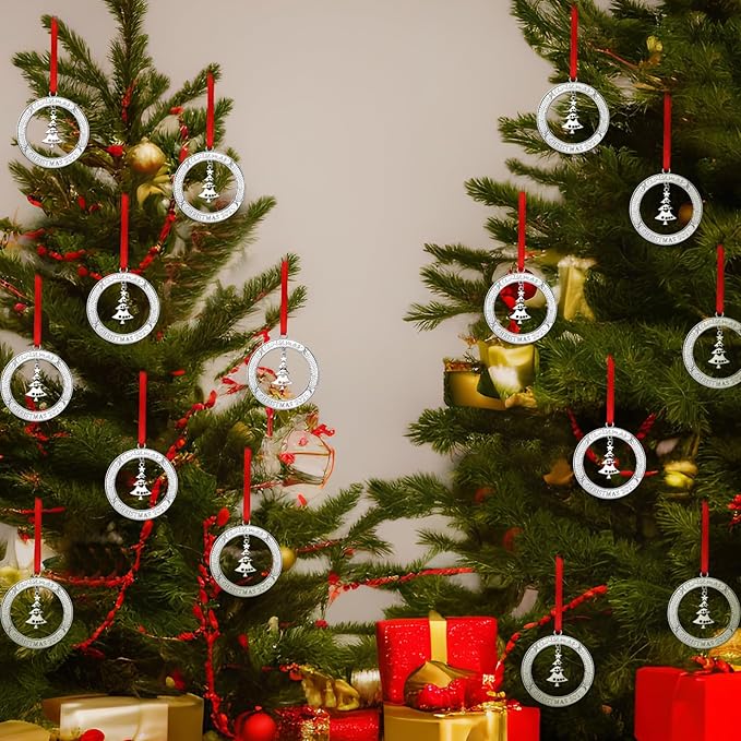 - Elegant and Eye Catching Shape: these metal Christmas tree ornaments are designed with the shape of circle with holly Christmas tree, and the words [Christmas 2024] on it bring a Christmas blessing for you and your friends