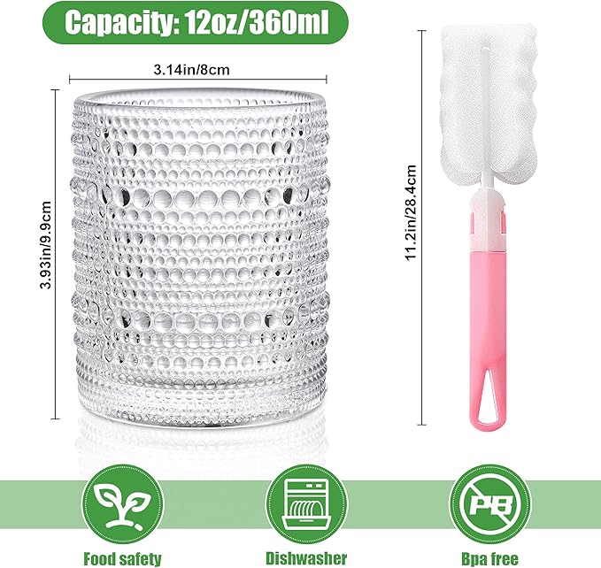 - 【PACKAGE DETAILS】:Includes 6 360ml exquisite water glasses, 1cup brush.Cups are dishwasher-safe and come out sparkling clean without losing their shine or pattern.