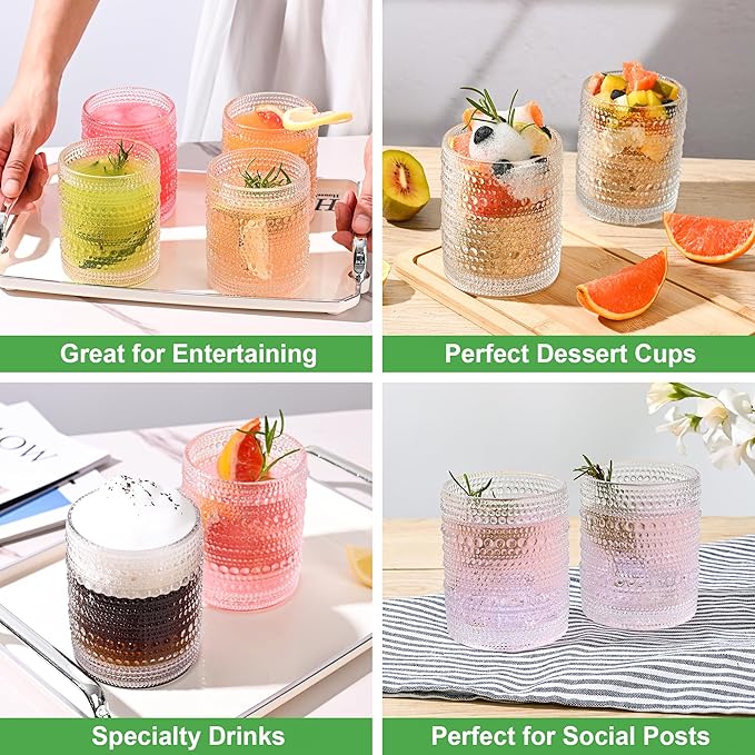 Hobnail Drinking Glasses Set of 6,12oz Vintage Glassware Embossed Vintage Water Cups Cocktail Glasses Juice Glasses