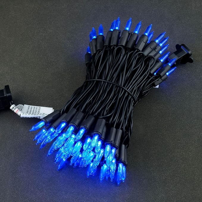 - Enchanting True Blue ♥ 100 LED blue mini bulbs on black wire, they are true blue. Transform your home into a captivating wonderland with these stunning blue LED Christmas lights. The black cord elegantly blends with any decor, ensuring that your lights shine brightly without distracting from your overall theme. The captivating blue glow adds a touch of magic to any space, making it perfect for Christmas, Halloween, All Saints' Day, Hanukkah, Diwali, and more.