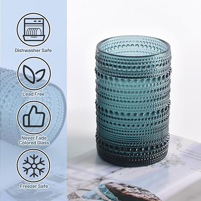 - COLORED GLASS: True colored glass is lead-free, dishwasher-safe and able to withstand aging, makes sure color won’t fade even after long time use