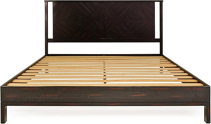 Bme Ethan King Size Bed Frame with Diamond Headboard, Rustic Mid-Century Modern, Solid Acacia Wood, No Box Spring Needed, Slat Support, Rustic Black