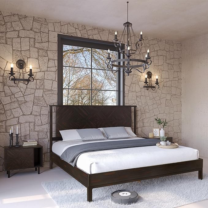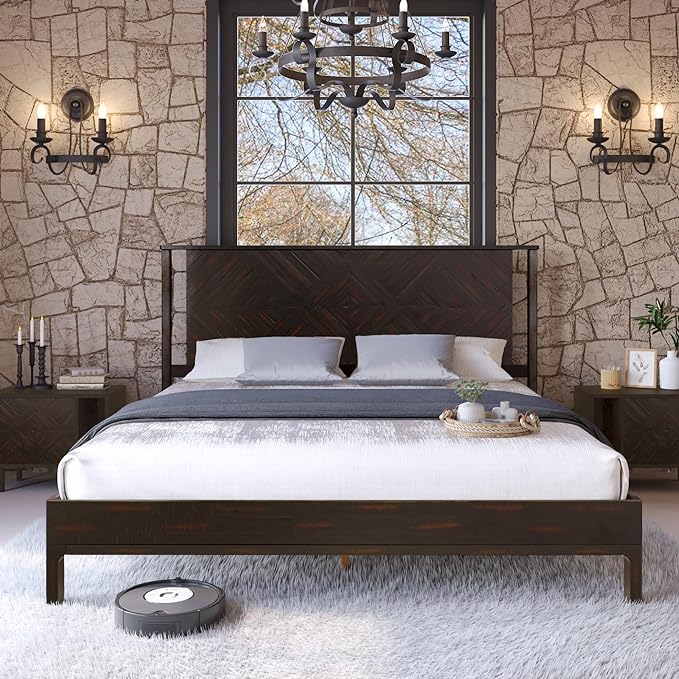 - EXCEPTIONAL CRAFTSMANSHIP: Crafted from selected acacia wood, our king bed frame features a unique sanding process for a rustic finish; The sleek rustic black tone adds elegance and makes a striking impression