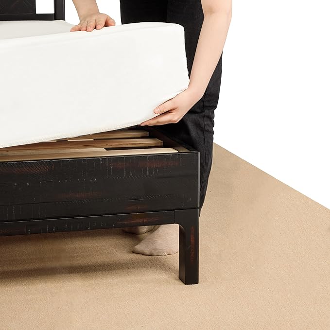 - NO BOX SPRING NEEDED: This bed frame is engineered with convenience and durability in mind; features 12 well-spaced wooden slats secured with velcro to prevent squeaky noises and enhance mattress support; There is no need for a box spring, ensuring a sleek, supportive sleep foundation