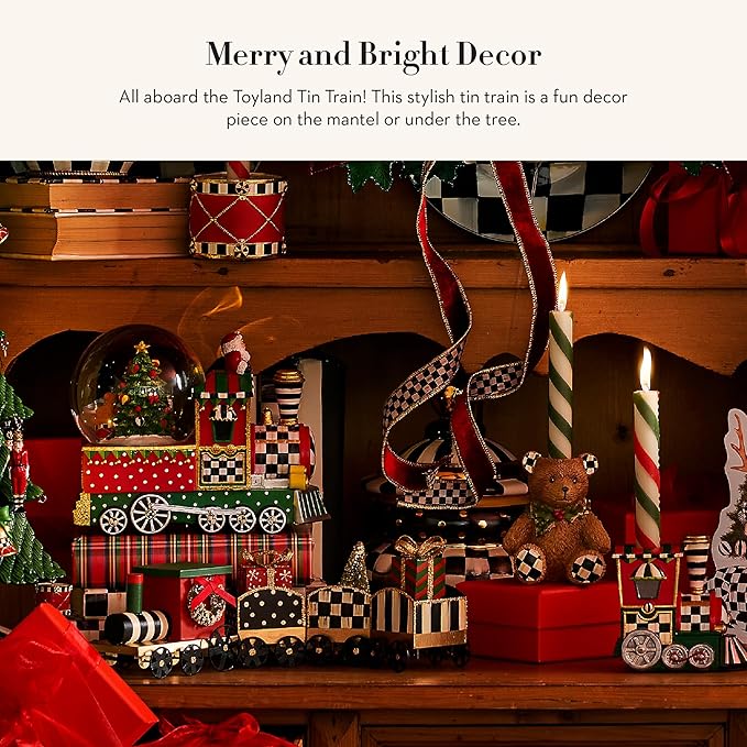 MACKENZIE-CHILDS Toyland Tin Train, Christmas Tabletop Decor, Holiday Train Decor
