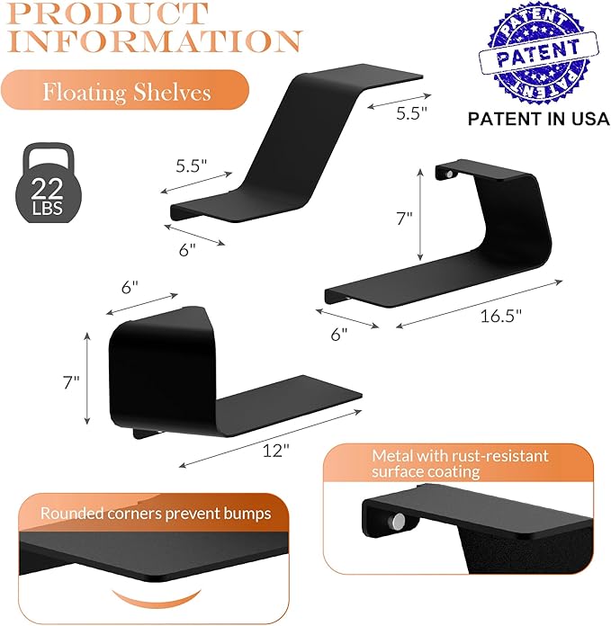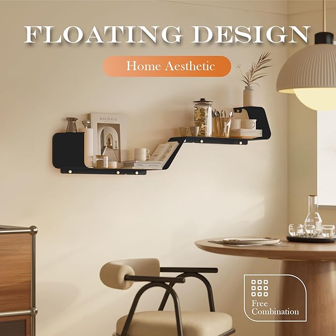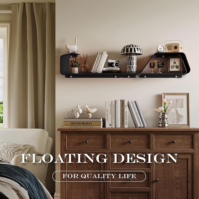 - High Quality Metal Materials Easy to Clean: The floating shelf from premium metal, it is not only easy to clean but remarkably durable. Its surface features an anti-rust coating for excellent oxidation resistance. The robust metal construction ensures it can bear significant weight without deformation. Just wipe gently with a rag, you can make it restore the original luster.