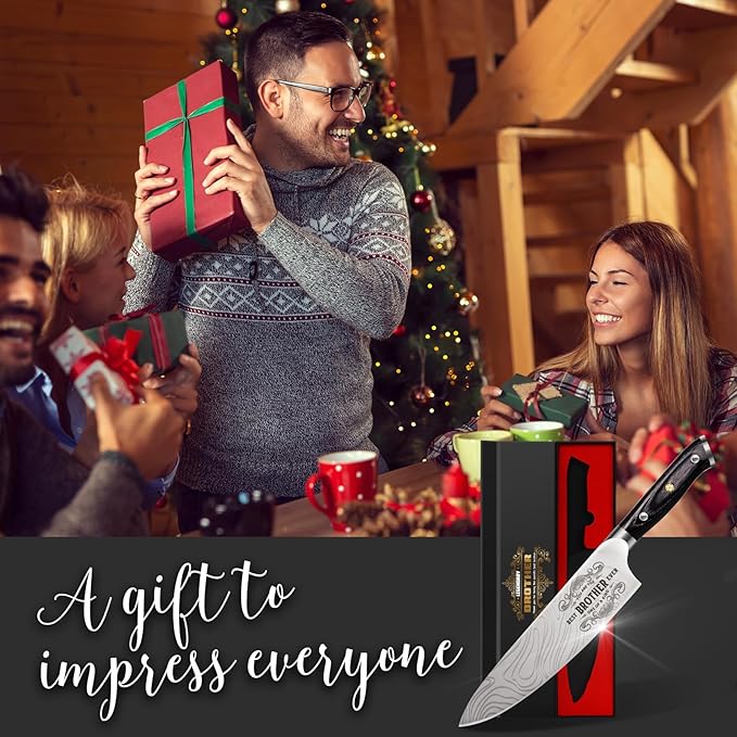 - Create a Special Christmas:This premium kitchen gift set, engraved 'BEST BROTHER EVER,' comes in a luxurious gift box. Even in your absence, every time your BROTHER wields this chef's knife, he'll be reminded of you, as if your presence is right there in the kitchen with him. The laser-engraved words are long-lasting and won't fade, safe for cooking. This kitchen knife is the perfect modern gift for Christmas, birthdays, or retirement, ideal for gifting to men BROTHER who has everything