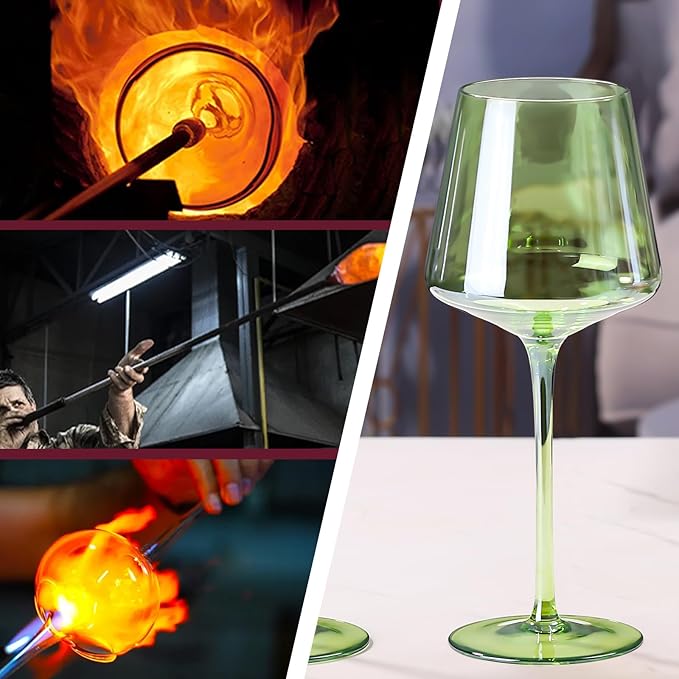 - 〖Hand Blown Wine Glass〗Green wine glasses with smooth edges, health and safety, carefully crafted by skilled artisans through multiple processes at high temperatures, the wine glasses are unique and elegant, with a smooth and comfortable taste