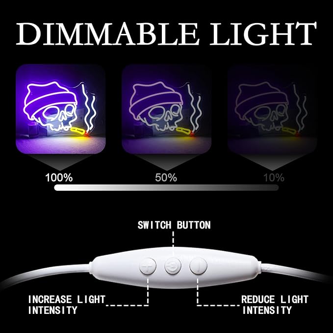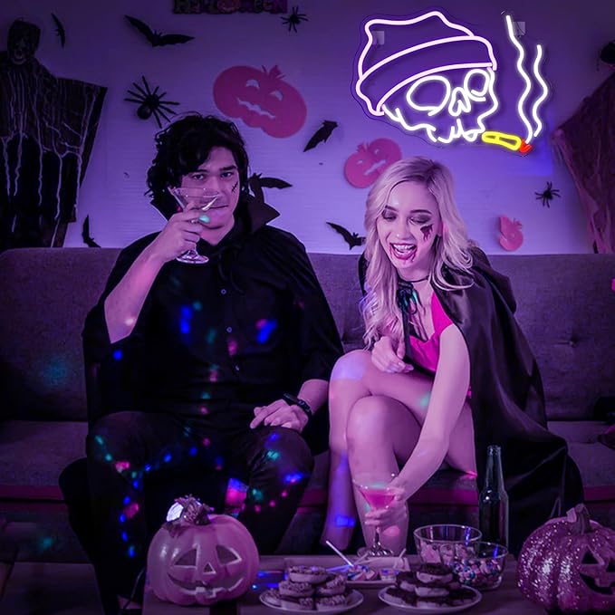 Lucunstar Skull Neon Sign,Halloween LED Sign,Neon Signs for Wall Decor,Adjustable Brightness Halloween Neon Signs, Neon Sign For Party,Bedroom Wall Decor,Home,Party Light Decoration