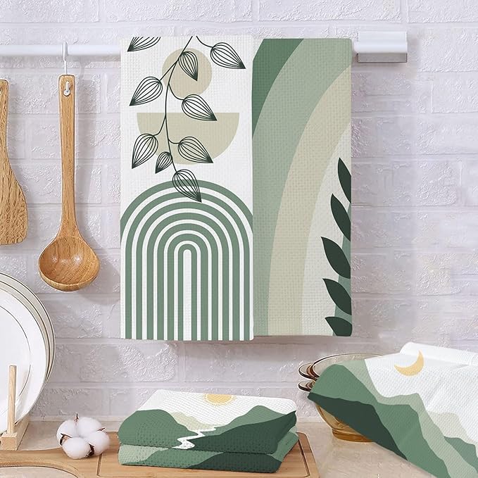 Boho Kitchen Dish Towels 4 Pack Mountains Rivers Absorbent Decorative Tea Towels