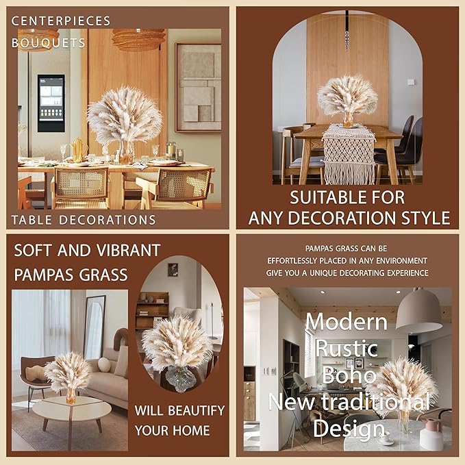 - BEAUTIFUL HOME DECOR - Be ready for our attention-grabbing pampas grass to stand out in any room!Whether it be homes, offices, or weddings, our pampas grass fits effortlessly with boho, farmhouse, and modern style decorations!