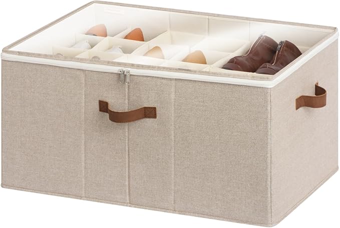 - The internal polypropylene dividers of this shoe storage organizer for closets are attached to the side panels, making it easy to customize the compartment sizes and keeping shoes securely in place during storage.