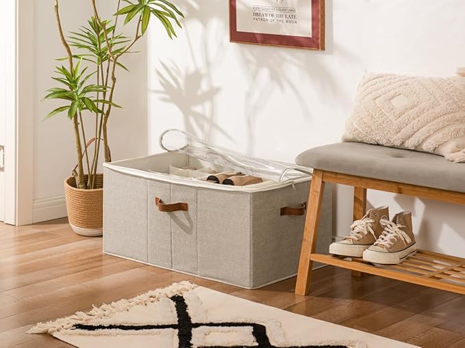 - The storage box features a clear lid that allows for easy identification of contents while keeping them safe from dust and is perfect for storing various kinds of shoes, such as sneakers, loafers, sandals, and flat shoes.