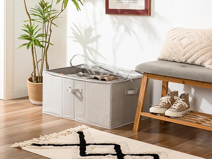 - The storage box features a clear lid that allows for easy identification of contents while keeping them safe from dust and is perfect for storing various kinds of shoes, such as sneakers, loafers, sandals, and flat shoes.