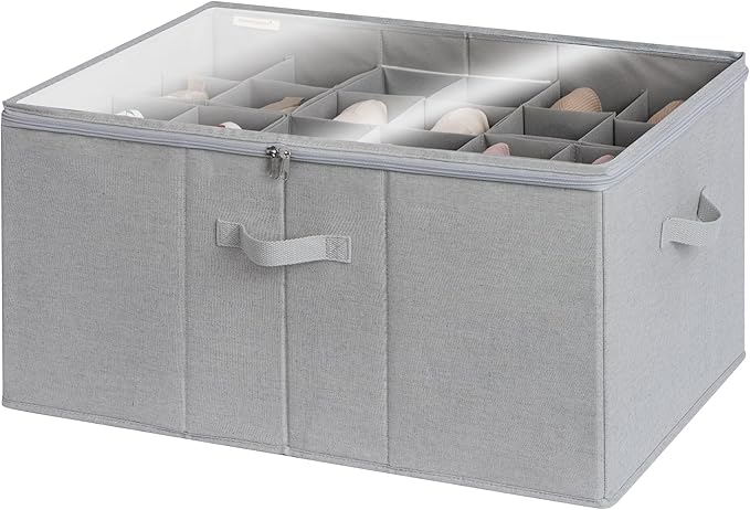 StorageWorks Shoe Organizer for Closet, Fits up to 24 Pairs, Shoe Cubby Storage Containers with Adjustable Dividers and Clear Cover, Grey