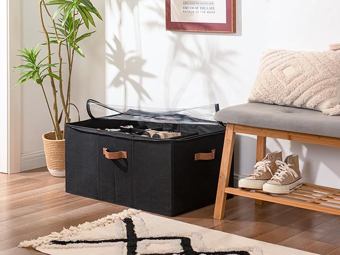 - The storage box features a clear lid that allows for easy identification of contents while keeping them safe from dust and is perfect for storing various kinds of shoes such as sneakers, loafers, sandals and flat shoes.