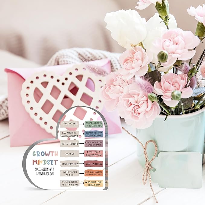 Growth Mindset Decor, Mental Health Therapy Office Classroom Art Educational Acrylic Heart Inspirational Gift Change Your Mindset Decorations Positive Sayings Gifts for Teacher Students School