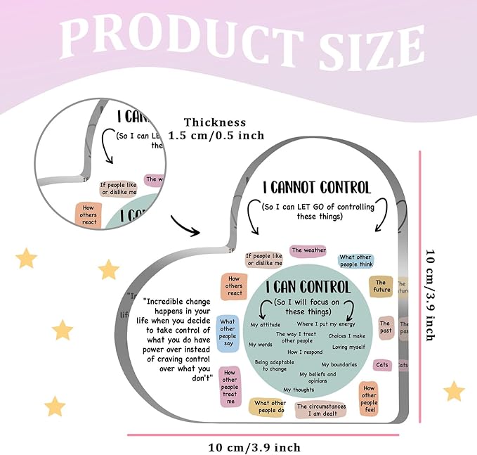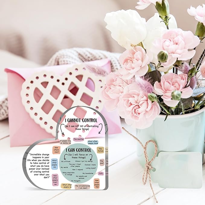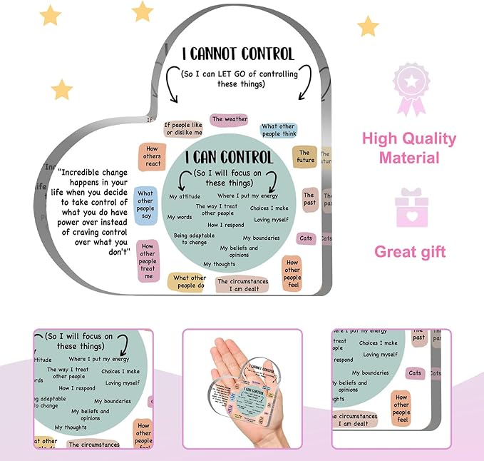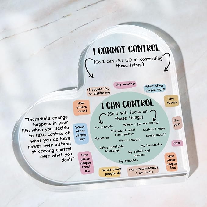 Mental Health Things I Can Control Decor, Mindfulness Therapy Anxiety Decor Office Acrylic Heart Gifts, School Counselor Sign Therapist Office Art Decorations for Therapist Office Living Room Bedroom Gift