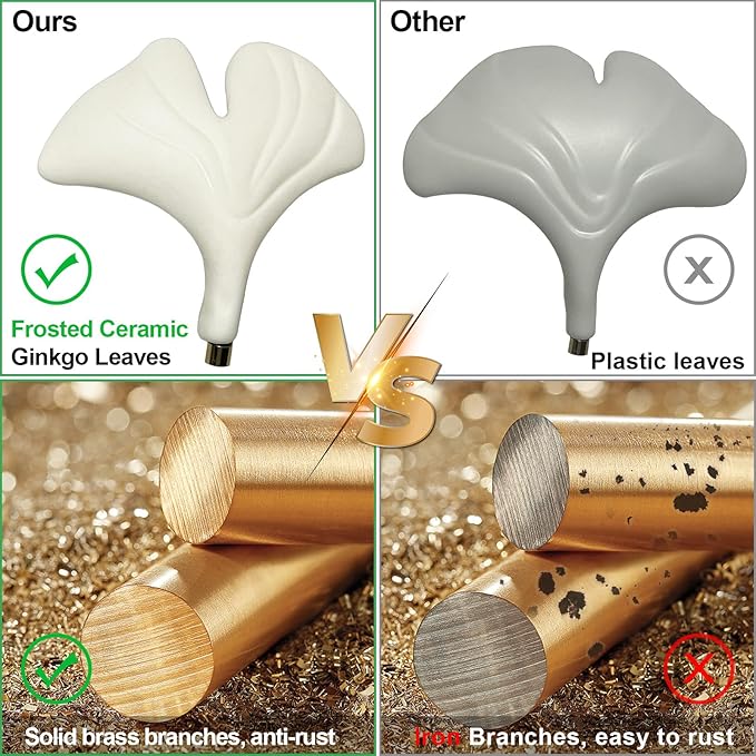 - Exquisite Workmanship: The hanging brass chandeliers branches with metal finish plating process, corrosion resistant, rust proof and the branches can be manually adjusted. The handmade ginkgo leaves is finely frosted, making this pendant light fixtures more textured and premium.