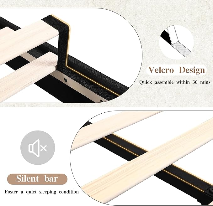 - 【Non-Slip and Sturdy Bed Legs】The comfortable bed frame with heavy-duty feet that provide a stable base, making the bed sturdy and any annoying squeaks or creaks that could disrupt your sleep, providing you with the serenity sleeping time.