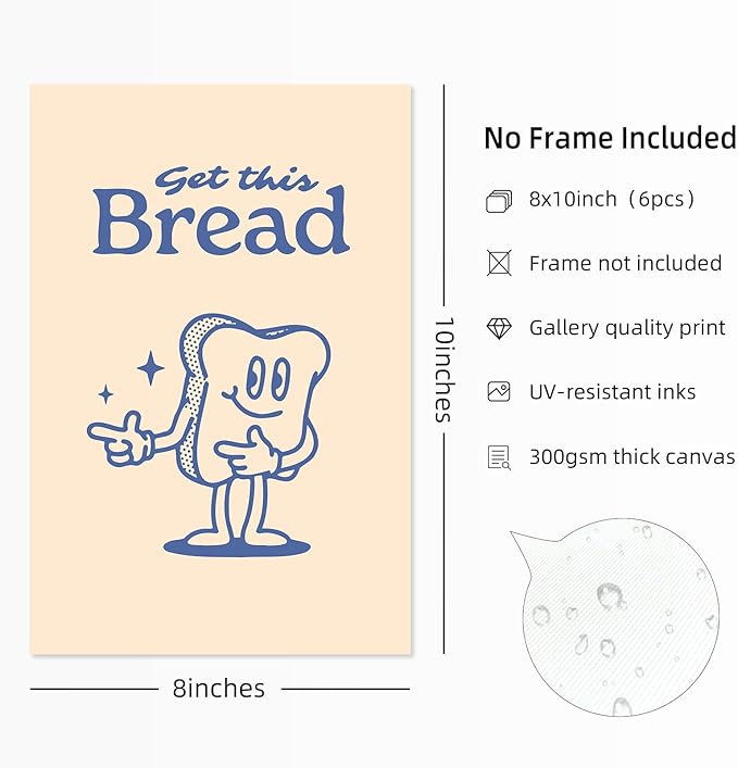 Retro Trendy Wall Art Decor Kitchen Aesthetic Canvas Wall Art Vintage Cute Pictures Funny Green Posters Retro Pink Prints Vintage Gallery Painting Funky Artwork for Room 8x10 Inch Unframed Set of 6