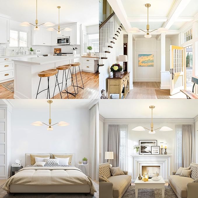 - 【HIGH-QUALITY AND DURABLE】The sputnik chandeliers is made of exquisite glass lampshade and opal white plating design, corrosion-resistant, scratch-resistant, easy to clean, E12 Lamp holder. Assembled with adjustable rods, customers can install the pendant light in the desired height via adjusting the extension rods.