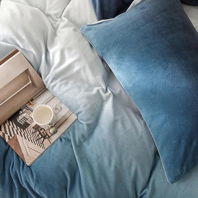 - 【3Pcs Gradient Blue White Velvet King Size Comforter Sets】 : 1 x comforter ( 104" x 90") + 2 x pillowcases (20" x 36").