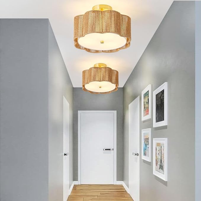 - 【Idea Lighting Decoration & Widely Application】 Rattan modern ceiling light fixture will bring you a wonderful ambiance to any space.Ideal for kitchens, farmhouse dining rooms, hallways, bedrooms, entrances, corridors, lobbies, libraries, reading rooms and more. Boho light fixture ceiling also is a wonderful and practical present for family and friends.