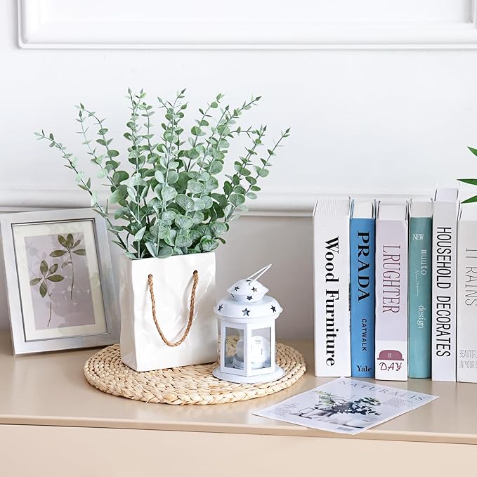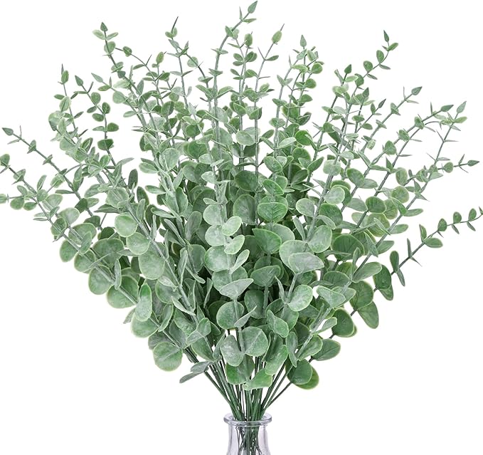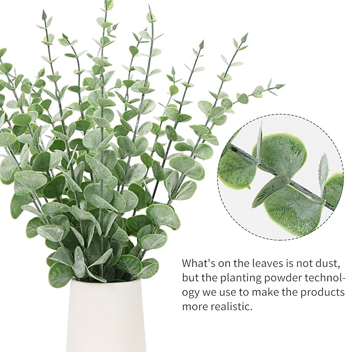 - 【 Substance of eucalyptus branches】 These artificial eucalyptus leaves are made of plastic. The powder planting technology is adopted to create a natural frosty green in leaves which gives your space a natural look.