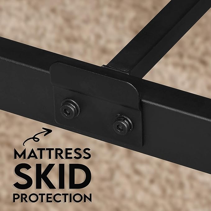 - DURABLE METAL CONSTRUCTION: Crafted with a sturdy wrought steel, this bed frame provides a stable mattress foundation with extra metal rods. Its strong iron build resists sagging, boosts structural strength, and delivers consistent use over time.