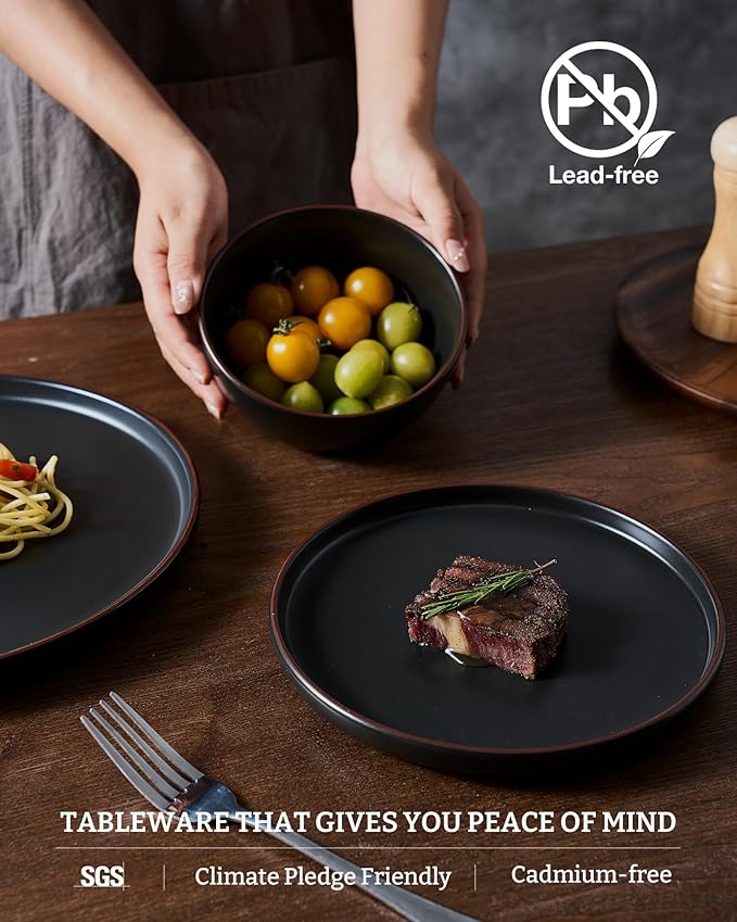 - 【FOOD GRADE NATURAL GLAZE】All of our dinnerware sets are made of food grade glaze. You can safely use them to serve steaks, salads or desserts, no need to worry about any harmful substances leaching into the food.