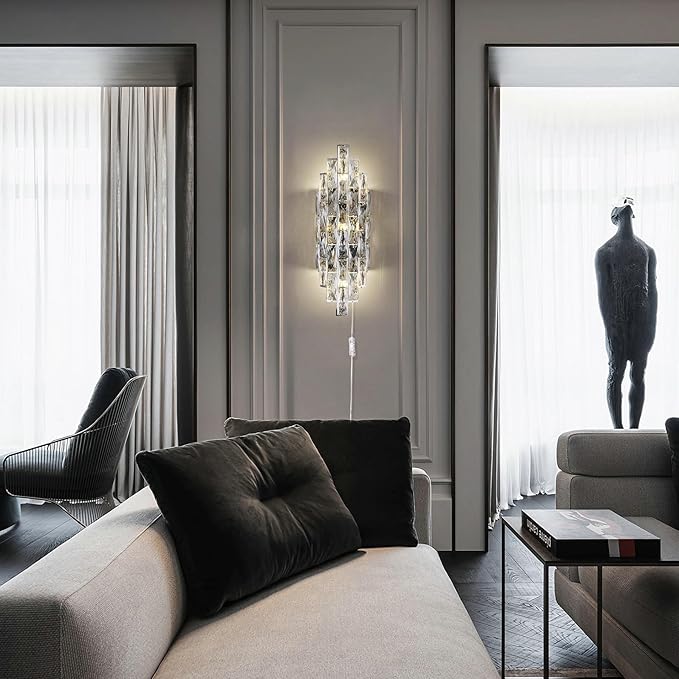 Modern Plug in Wall Sconce Crystal Wall Sconces Indoor Wall Lamp for Bedroom Chrome Light Fixture with Plug in Switch Vanity Wall Mount Lamps for Living Room Bedroom Bathroom Bedside Hallway
