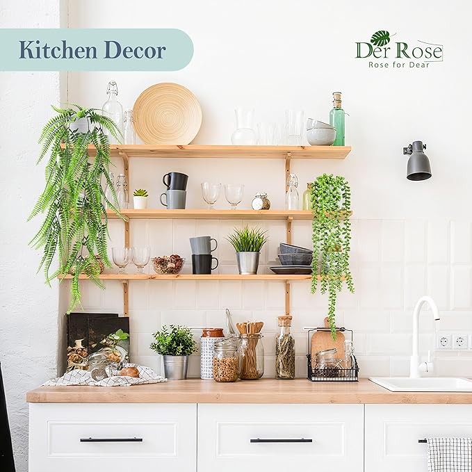 - Unbelievably Realistic: Get the beauty of real aesthetic plants without the hassle. These potted fake hanging plants have a 100% lifelike appearance, with clear leaf veins and a realistic shape and color. They won't wilt or fade, staying vibrant and fresh year after year