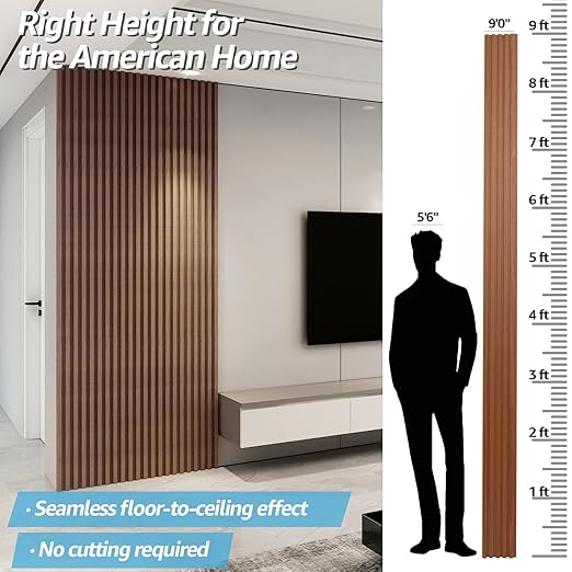 Art3d WPC Slat Wall Panels, 8-Pack 108 x 6 Inch 3D Wall Accents for Interior Wall Decor, Living Room, Bedroom, Teak