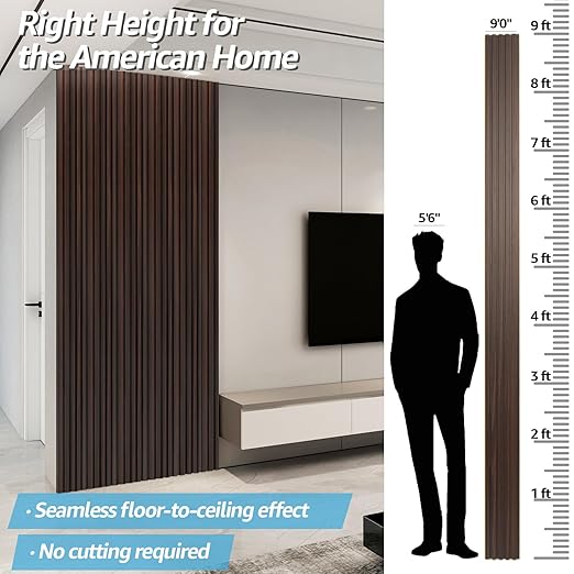 Art3d WPC Slat Wall Panels, 8-Pack 108 x 6 Inch 3D Wall Accents for Interior Wall Decor, Living Room, Bedroom,Walnut