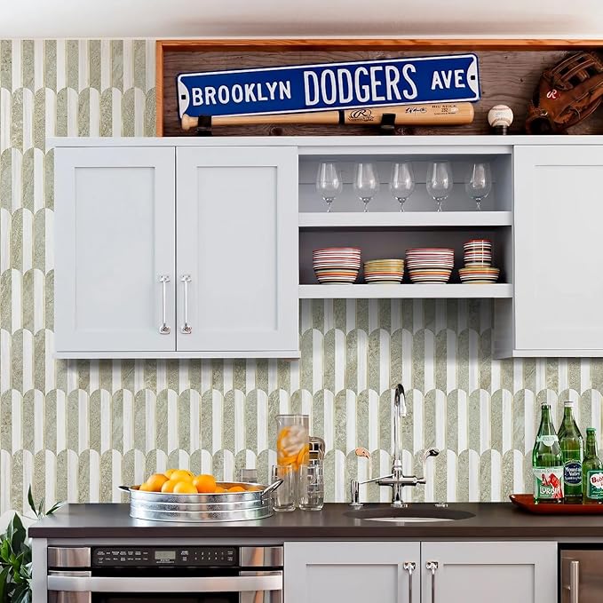 - Premium Materials:Made of PVC composite laminate, anti-scratch, high impact, color fadeless, more durable and stronger than other plastic self-adhesive tiles. Realistic marble texture and Long Oval Geometric design, which can be installed in Vertical or Horizontal styles, and match with most of the countertop.