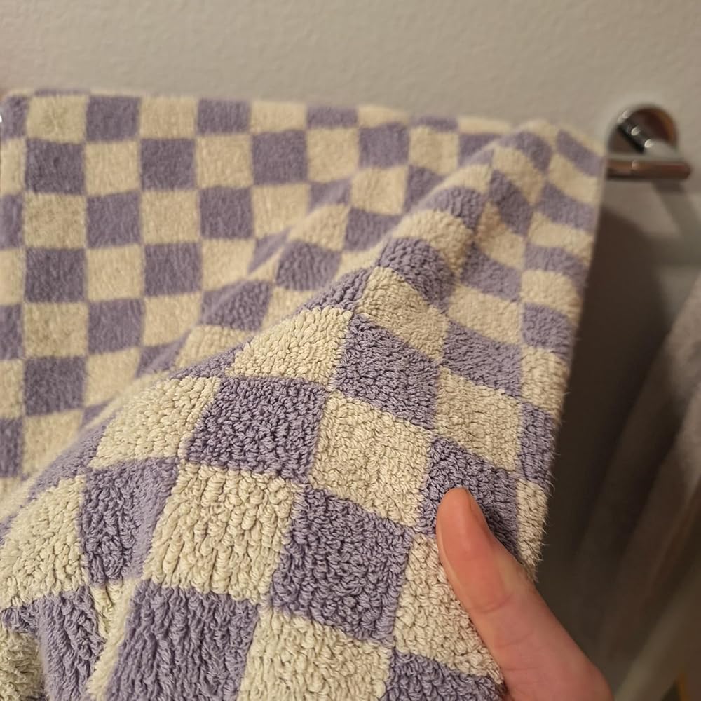 - Bathroom Transformation - Watch as your bathroom and guest room come to life with these lilac checkered towels, providing a stunning makeover and surprising guests with unexpected luxury