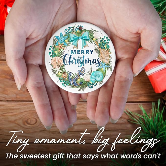 Beach Christmas Ornaments 2025 - Ceramic Ornaments for Tree - Beach Gifts for Women Men Friend, Ocean Ornaments for Christmas Decorations, Stocking Stuffers Ocean Gifts for Xmas Decorations
