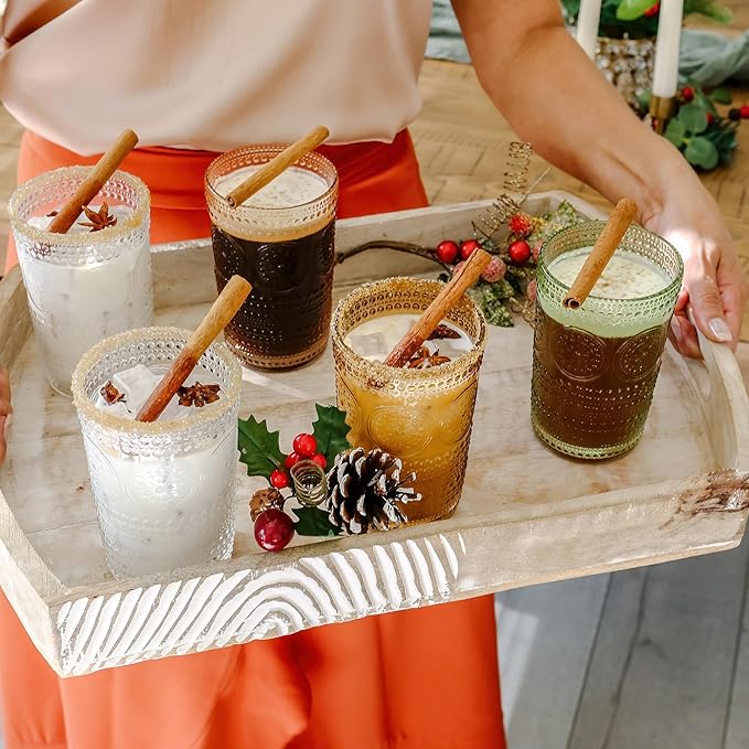 - Sweet tea glasses, Water glasses, iced coffee cup, juice cups, these are great for any cold drink from cocktails to mocktails and even beer! With a nice weight they feel great in your hand and look even better! The retro boho esthetic is sure to make all your guest where you got them from!