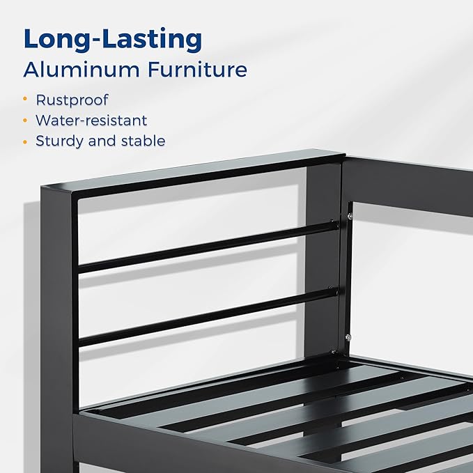 - 100% ALUMINUM- Our outdoor patio furniture is distinguished from other metal furniture by its thick gauge PURE ALUMINUM frame. The lighter weight metal loveseat is built to last a lifetime and is distinguished by exquisite techniques such as anodization surface treatment and a highly powder-coated finish.