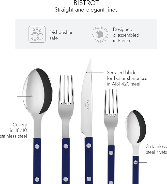 - FRENCH SAVOIR-FAIRE: Sabre Paris is a French brand of handcrafted tableware, showcasing the artistry of French craftsmanship. Our cutlery is proudly made in France, crafted at our workshop in the Parisian region.