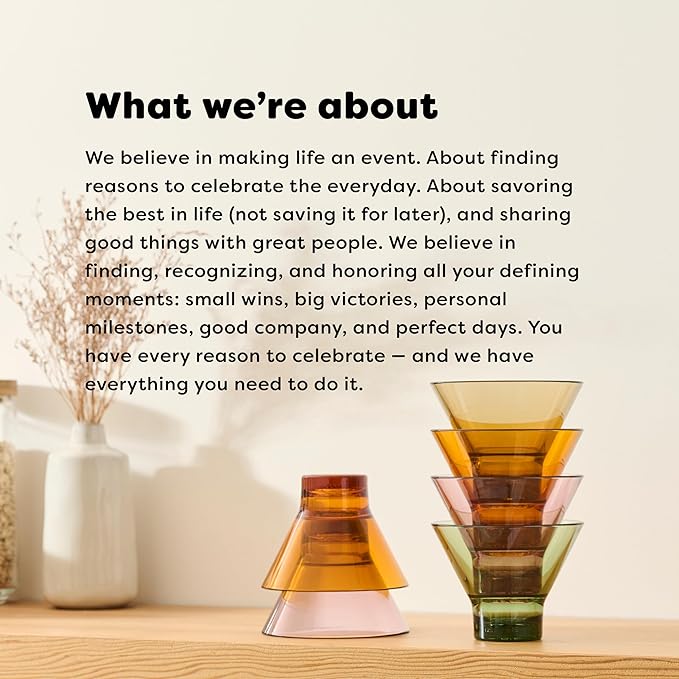 - The shape of good things to come. Break them out when you’re celebrating and toast to your heart’s content — no chips, no cracks, just cheers.